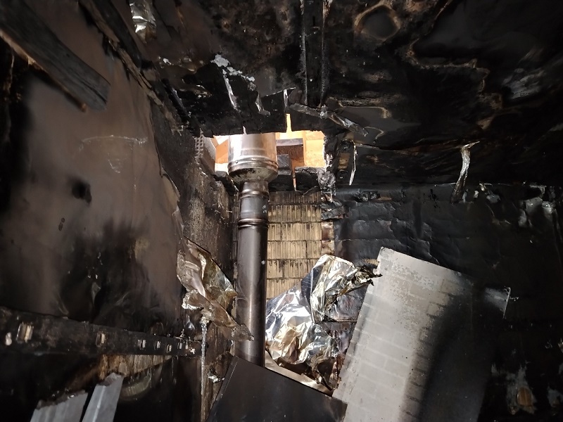 ‒ эксплуатация печи и других отопительных приборов без противопожарных разделок (отступок) от конструкций из горючих материалов. Размеры противопожарной разделки следует принимать равными 50 см, отступка от наружной поверхности печи или дымового канала (трубы) до стены или перегородки, конструкций кровли должно составляет 32 см или 26 см до стены или перегородки, конструкций кровли которые защищены от возгорания;